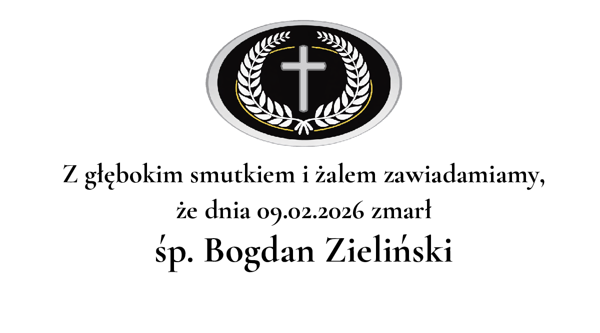 Z żalem informuję, że nie żyje Bogdan Zieliński. Pogrzeb odbędzie się 14.02.2026. Lokalizacja: Parafialny. Więcej informacji na stronie https://www.juka-pogrzeby.pl/nekrolog/bogdan-zielinski/